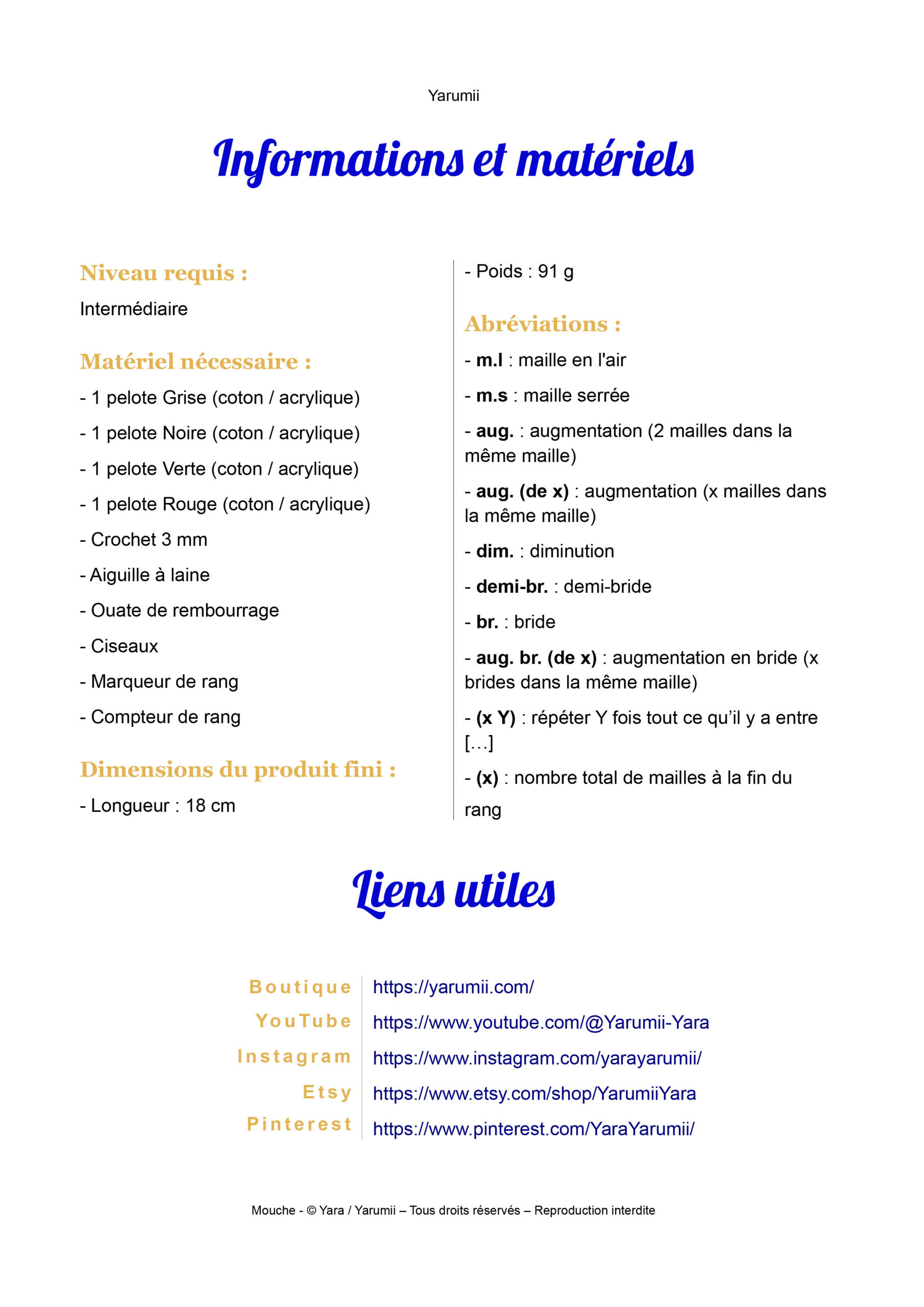 Vous pouvez vendre les créations issues de ce patron à petite échelle en mentionnant le design original : “Yara / Yarumii”.